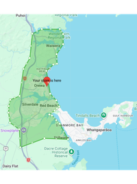 This map shows the Monday & Wednesday delivery zone across the Hibiscus Coast.